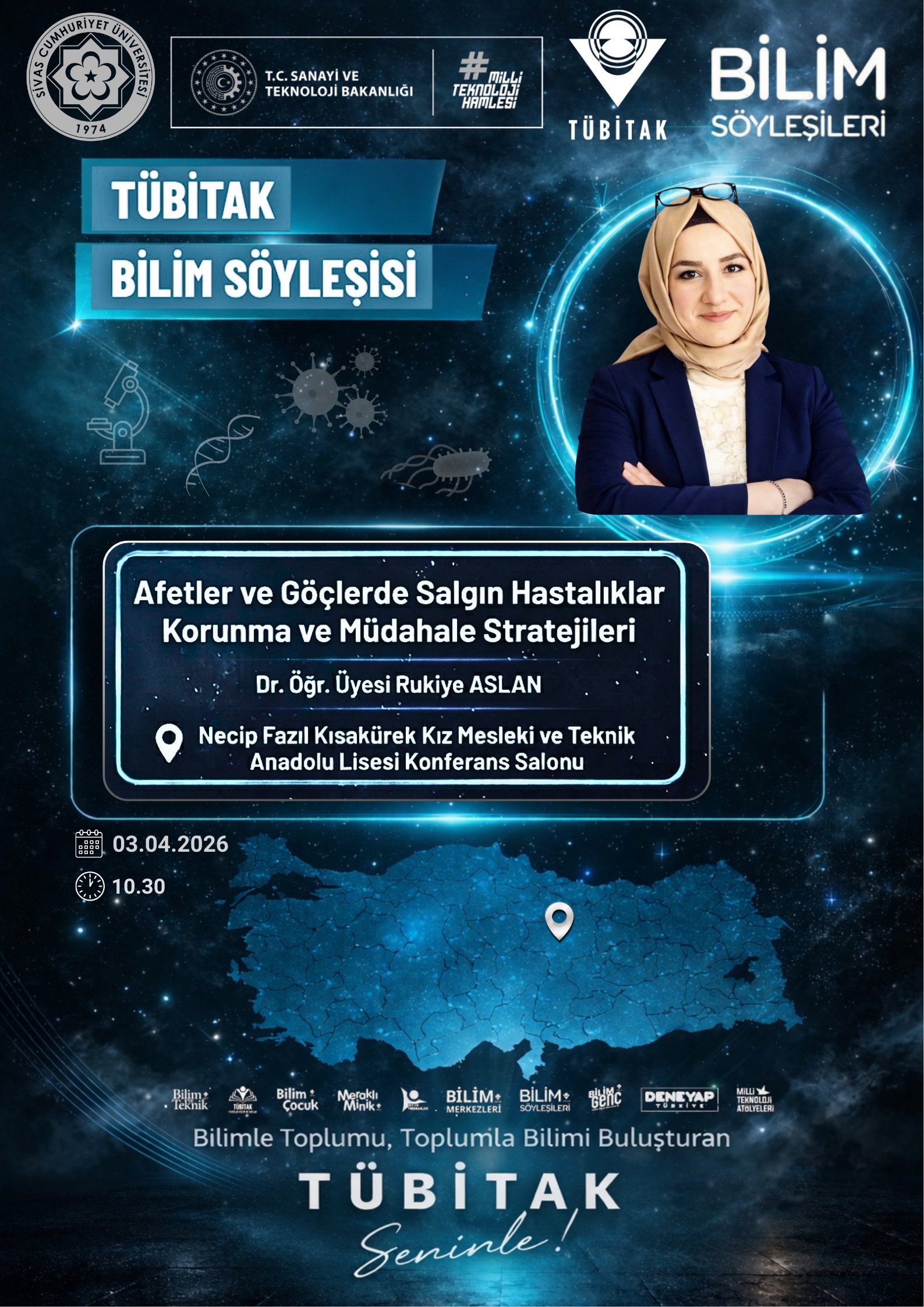 TÜBİTAK Bilim ve Toplum Başkanlığı tarafından yürütülen Bilim Söyleşileri Programı kapsamında, Sivas Cumhuriyet Üniversitesi Eczacılık Fakültesi Dekan Yardımcısı Dr. Öğr. Üyesi Rukiye Aslan, Sivas Necip Fazıl Kısakürek Kız Mesleki ve Teknik Anadolu Lisesi öğrencileriyle bir araya geldi.